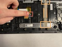 Peel back the tape from the metal button assembly on the bottom and the tape connecting the trackpad to the device at the top.