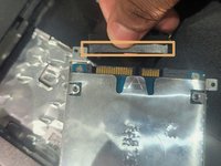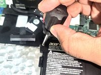 Remove the two screws mounted next to the battery using a Phillips #0 screwdriver.