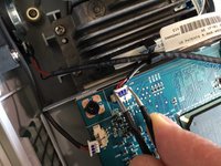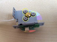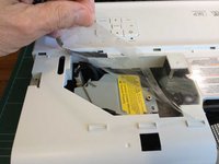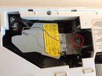 Remove a black screw from the front of the metal plate engaging with the optical assembly. This may be hidden by the wires passing through the adjacent wire clip.