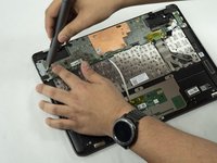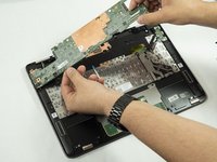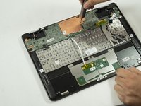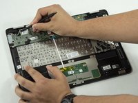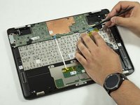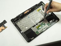 Use a Phillips #000 screwdriver to remove the 2 mm screws that secure the keyboard in place, and carefully remove the keyboard to avoid breaking it.
