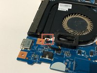 Disconnect the thermal module fan cable from the mainboard by pulling the cable directly upwards.