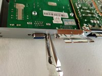 Use a 5mm nut driver to remove the 4 hex coupling screws that hold the VGA and DVI sockets to the shield.