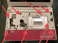 Rimuovere le 8 viti che fissano il guscio inferiore