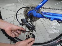 In steps 2 and 3, we adjust the high and low end adjustment stops, which set the maximum inward and outward distance that the derailleur can move the bike chain. Setting these boundaries prevents the derailleur from shifting the chain off of the sprockets and onto the axle.
