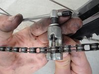 Align the push pin of the tool with the pin on the chain, and tighten the tool until the pin protrudes out the other side without falling all the way out.