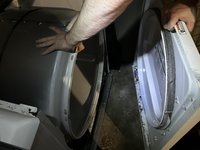 Using your thumb to hold the drum in place, pull the front panel of the dryer away from the drum.