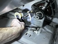 Grip the pulley bar and squeeze to push the pulley away from the drum.