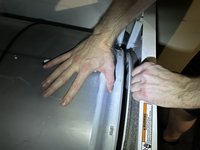 While keeping to the right corner, slip the butter knife in the slit above the dryer door.