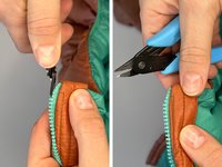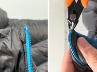 Move the slider to sit above the damage. Apply a coil top stop above and below the damaged area, connecting both sides of the zipper. The jacket is now a half-zip pullover!