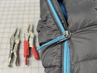 Skill - Clamp the top of the slider with one pair of needle nose vice grips and the bottom of the slider with the other pair of vice grips, making sure no fabric is caught.