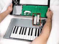 Using two plastic opening tools, slide the black locking mechanism on the ZIF connector towards you. This will remove the ribbon cable connecting the motherboard to the screen.