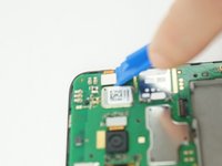 Use a metal Spudger to gentle remove the speaker that glued at the bottom left of the phone.