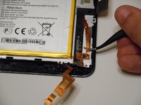 The volume button assembly is in the top left corner of the tablet. To begin, you will have to pull the small black tab of the ZIF connector, shown in the second picture, to be able to remove the assembly. The tab is on a hinge so it should not be pulled off completely.