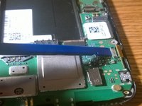 Start at the bottom left corner and insert a flat pry tool and work it in under the logic board to try and release the adhesive.