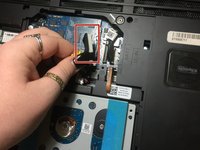Remove the two 4mm screws from the plastic covering protecting the inner part of the laptop.