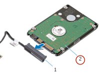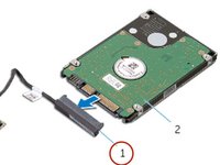 Using the pull tab, disconnect the hard-drive cable from the system board.
