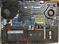 Use a PH1 screwdriver bit to remove the six M2.5x13 screws (2.4 mm) on the back of the laptop.
