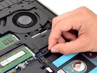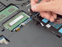 Disconnect the battery connector cable, located on the right side of the laptop, above the hard disk drive.