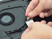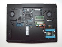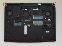 Unscrew the two M2x3 screws (1.9 mm) at the top right and top left of the laptop that hold the tron lights in place.
