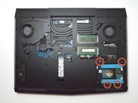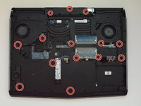 Use a PH1 screwdriver bit to remove the six M2.5x13 screws (2.4 mm) on the back of the laptop.