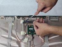 Now that the outer frame is removed, locate the two screws to the right and the left of the camera.