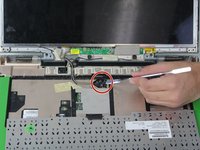 On the left of the display, remove the four screws located on the side of the display to remove the metal frame from the display. (Do the same for the right side.)