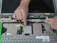 At the top of the keyboard, near the right corner, remove the screw that holds down the keyboard.
