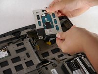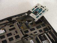 Loosen the three 6.35 mm size 1 screws to release the hard drive from the rest of the laptop.