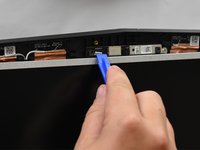 Use a spudger as a lever to pry the black plastic siding off of the frame starting on either of the top corners.