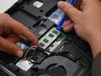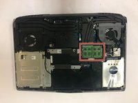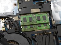 With the laptop flipped over, cover removed, and battery removed; continue by locating your RAM cards.
