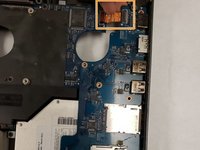 The orange connector's thin end should be disconnected from the motherboard. The CD Drive should still be attached to one end of it.