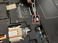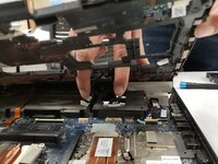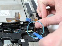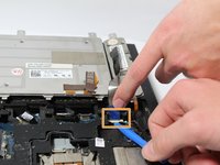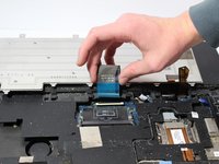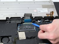 Flip the keyboard over towards the edge of the laptop to expose the locations of the connectors. Avoid tugging on the cables when you do this.