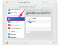 Once in the Privacy tab, Scroll through the box on the left and select "Full Disk Access"