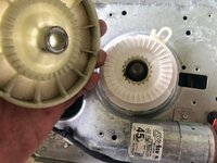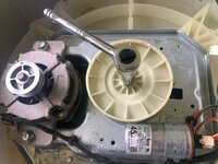 Remove the drive pulley from the shaft. Next is the drive basket gear.