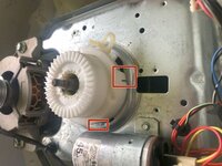 The drive basket gear sits on a spline on the drive shaft. Check the spline on the basket drive shaft if the teeth on the basket gear show damage.