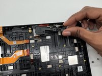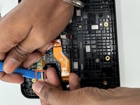 Use an opening tool to flip up the black ZIF locking flap that secure the four ribbon cables.