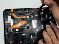 Use an opening tool to flip open the black ZIF locking flap that secures the ribbon cable.