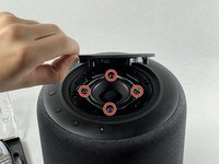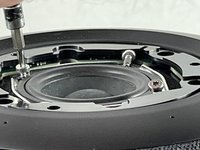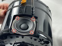 On the silver ring located on the outer edge of the plastic portion of the subwoofer, you will see four 2.7 mm screws. Use a Torx T10 screwdriver to remove them, in order to remove of the subwoofer.