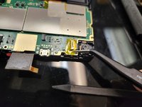 Using the tip of your spudger, lift the locking clip of the connector to release the ribbon cable.