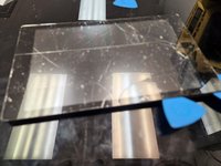 Using your heat gun, heat the edges of the glass to soften the adhesive. Start at the top right corner and work your around.