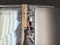 Note the area where the digitizer leads connect to the ribbon cable (orange).