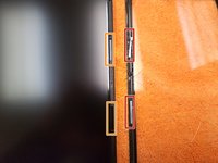 Release the two locking clips (yellow). The clips are holding the board down on the corners and it cannot be released easily without pulling back on them.