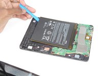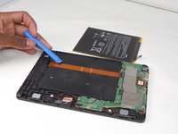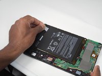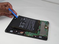 Before beginning this guide make sure your device is turned off, not hooked up to any power source, and make sure to unhook the battery from the motherboard. For this guide you will need spludgers, opening picks, and some adhesive to keep the new battery in place. You will need to remove the back casing to get to the battery. Once you’ve reached the battery, start pulling on the adhesive tape just sticking out from under the battery. Slowly and gently pull the adhesive up until it is fully out. Now the battery is ready for extraction and replacement.