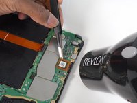 Heat up the little black square with yellow orange tape around it on the back of the device, atop the motherboard.