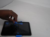 Slide the opening pick in between the screen and device, prying it just above the device.