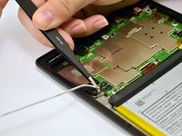 To remove the screen from the device, use tweezers to gently pull the orange cable from its connection to the screen.