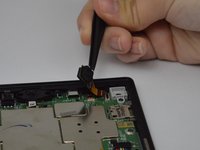 To remove the screen from the device, use tweezers to gently pull the orange cable from its connection to the screen.