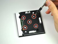 Use the T-10 bit from the iFixit tool kit to unscrew the four 1.4 inch corner screws on top of the first layer.