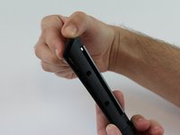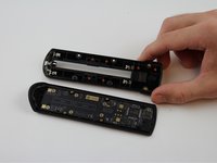 Place your thumb on the bottom part of the remote. Apply pressure as shown in the picture to release the back panel from the front of the case.