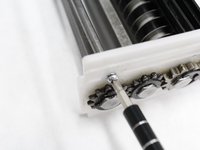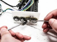 Remove the 15 mm Phillips #1 screw located on the plastic side plate of the shredding unit.
